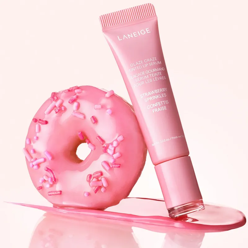 Laneige Glaze Craze Tinted Lip Serum — мгновенно увлажняющий серум для губ с  натуральным легким розовым тоном, который питает, восстанавливает и поддерживает защитный барьер тонкой кожи губ, повышает упругость, а также обеспечивает интенсивное увлажнение на 12 часов. Текстура серума мягкая и нелипкая. Продукт оснащен уникальным мягким аппликатором в форме пончика, который нежно и равномерно наносит серум на губы.